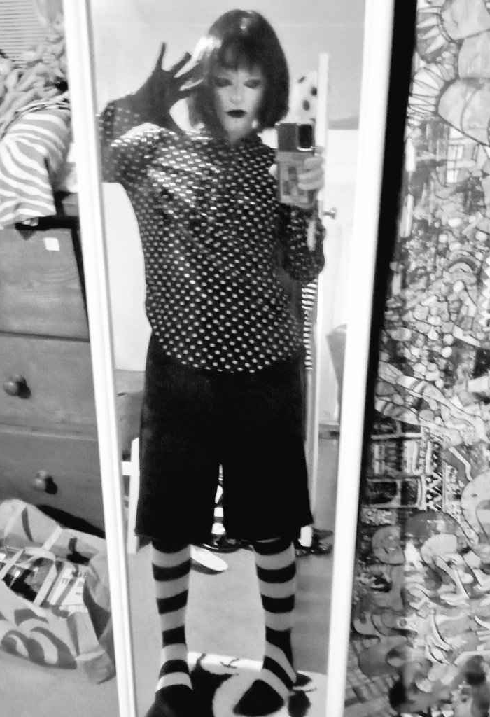 Not the best job. Cheap face paint, everything else including lipstick done with eyeliner that was running dry, wig cut at home (with a relative's assistance)... and the makeup was so cakey and gross up close lol